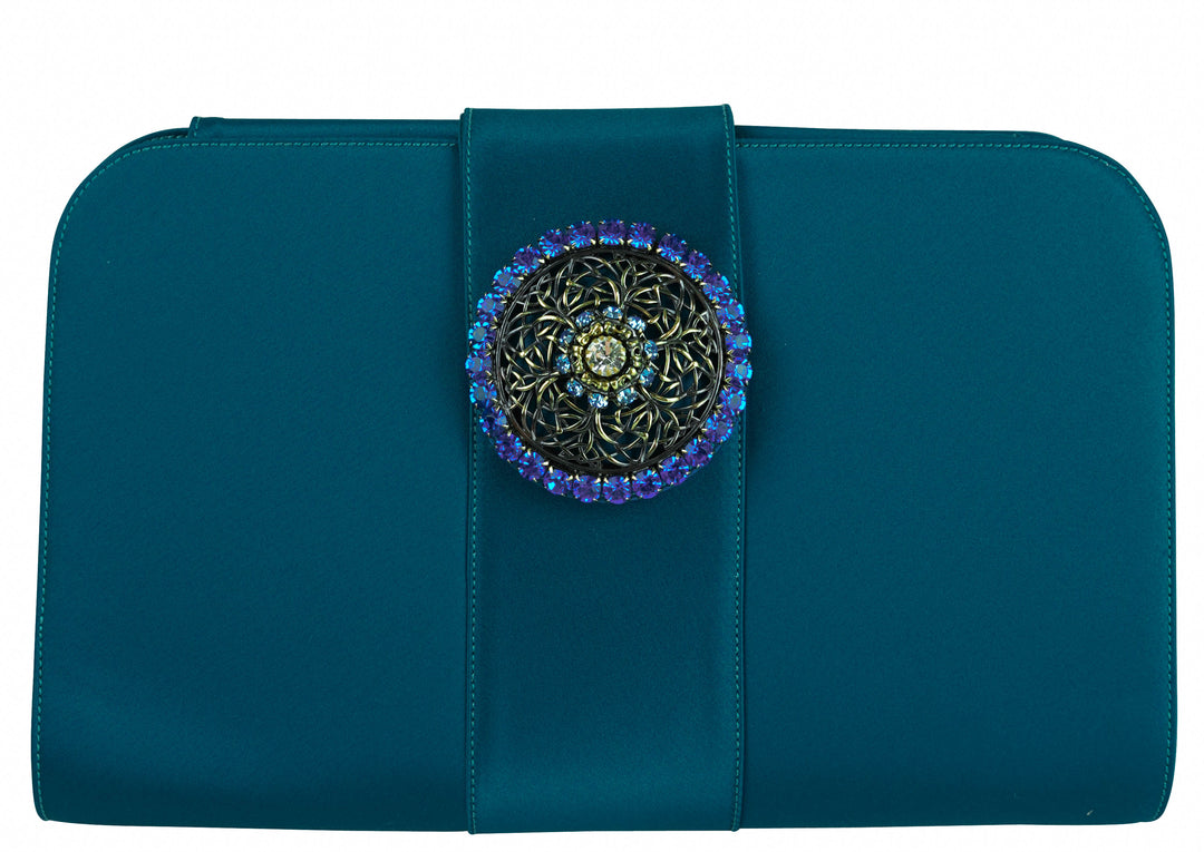 Renaud Pellegrino Bella Satin Clutch with Crystal in Blue