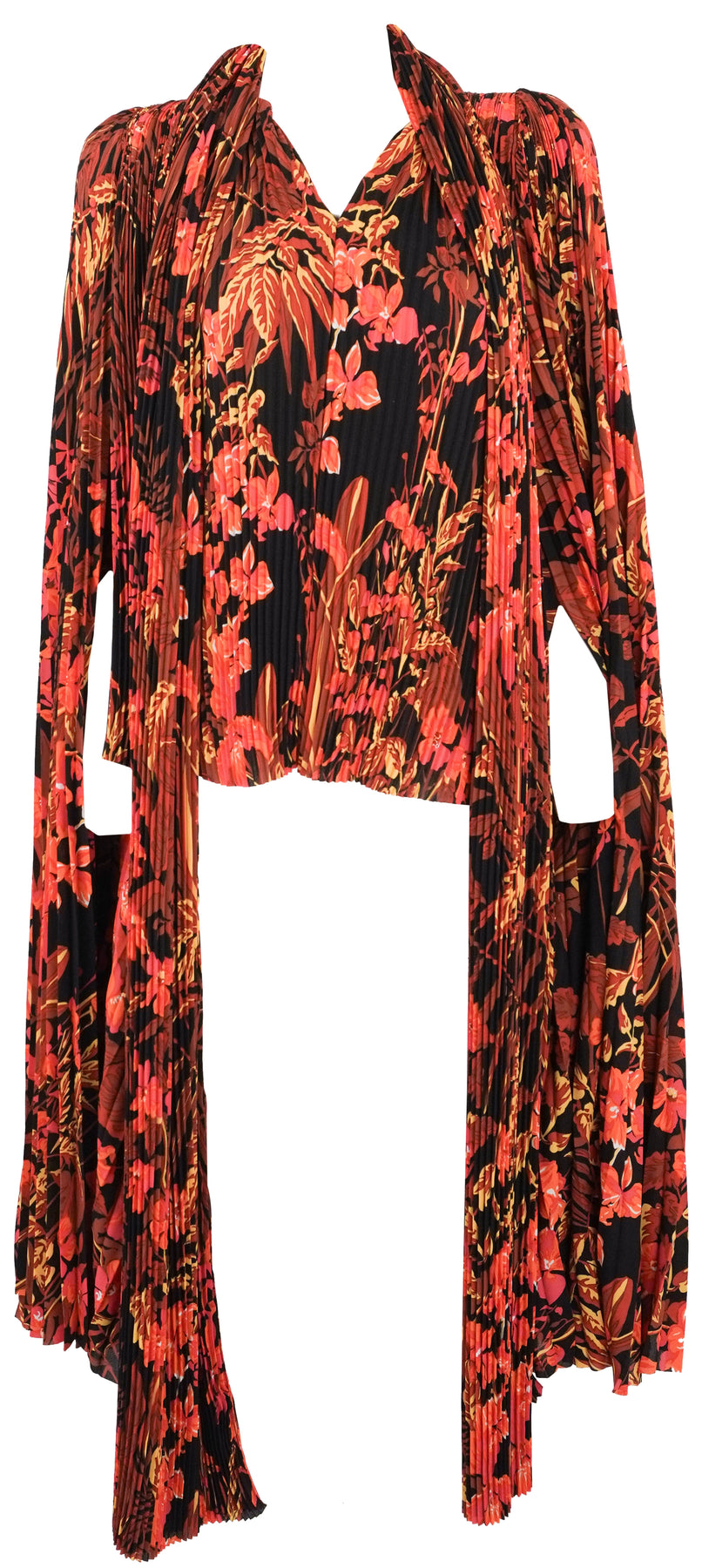 Balenciaga Floral Pleated Cape Effect Top in Orange/Red - Discounts on Balenciaga at UAL