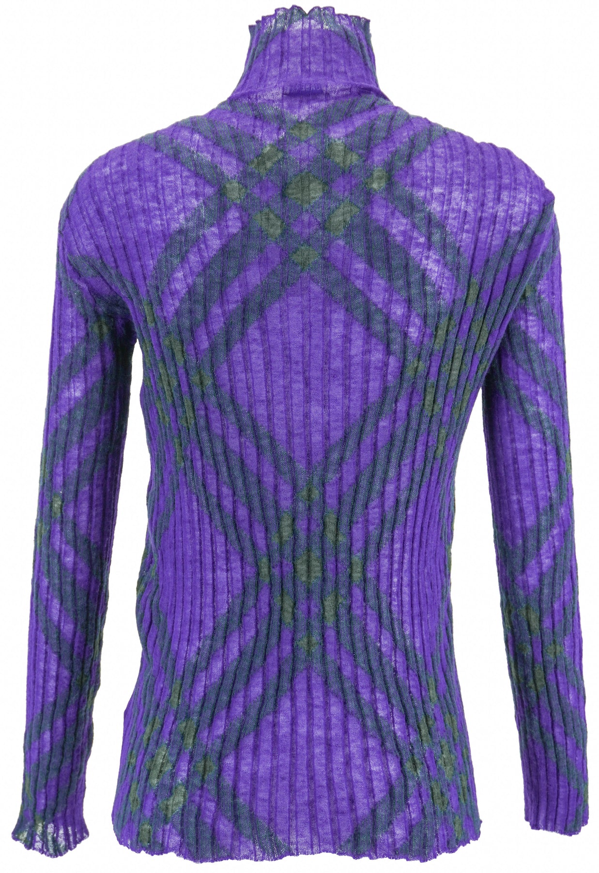 Burberry Wool Check Pattern Long Sleeve Turtleneck in Purple and Green - Discounts on Burberry at UAL