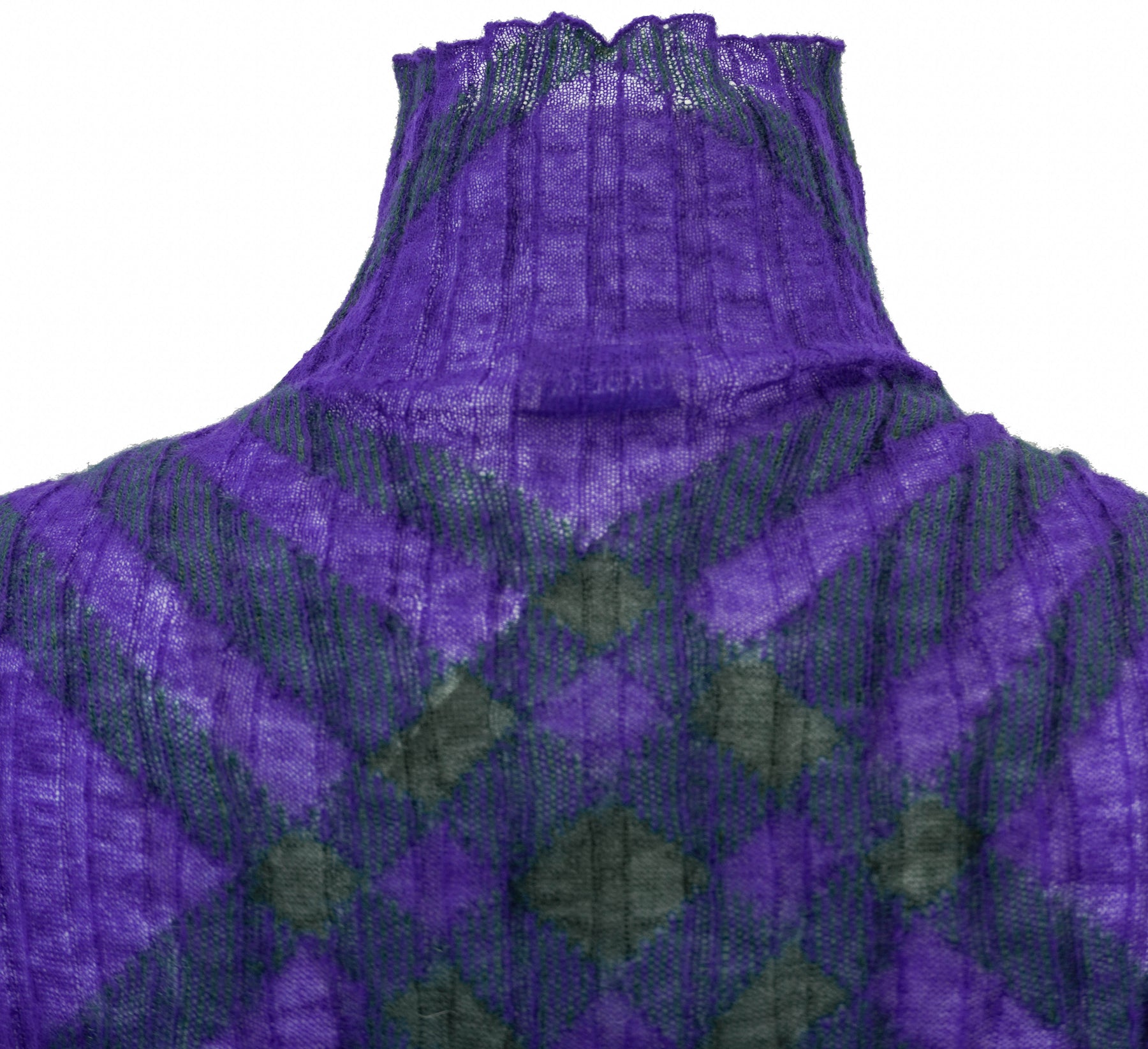 Burberry Wool Check Pattern Long Sleeve Turtleneck in Purple and Green