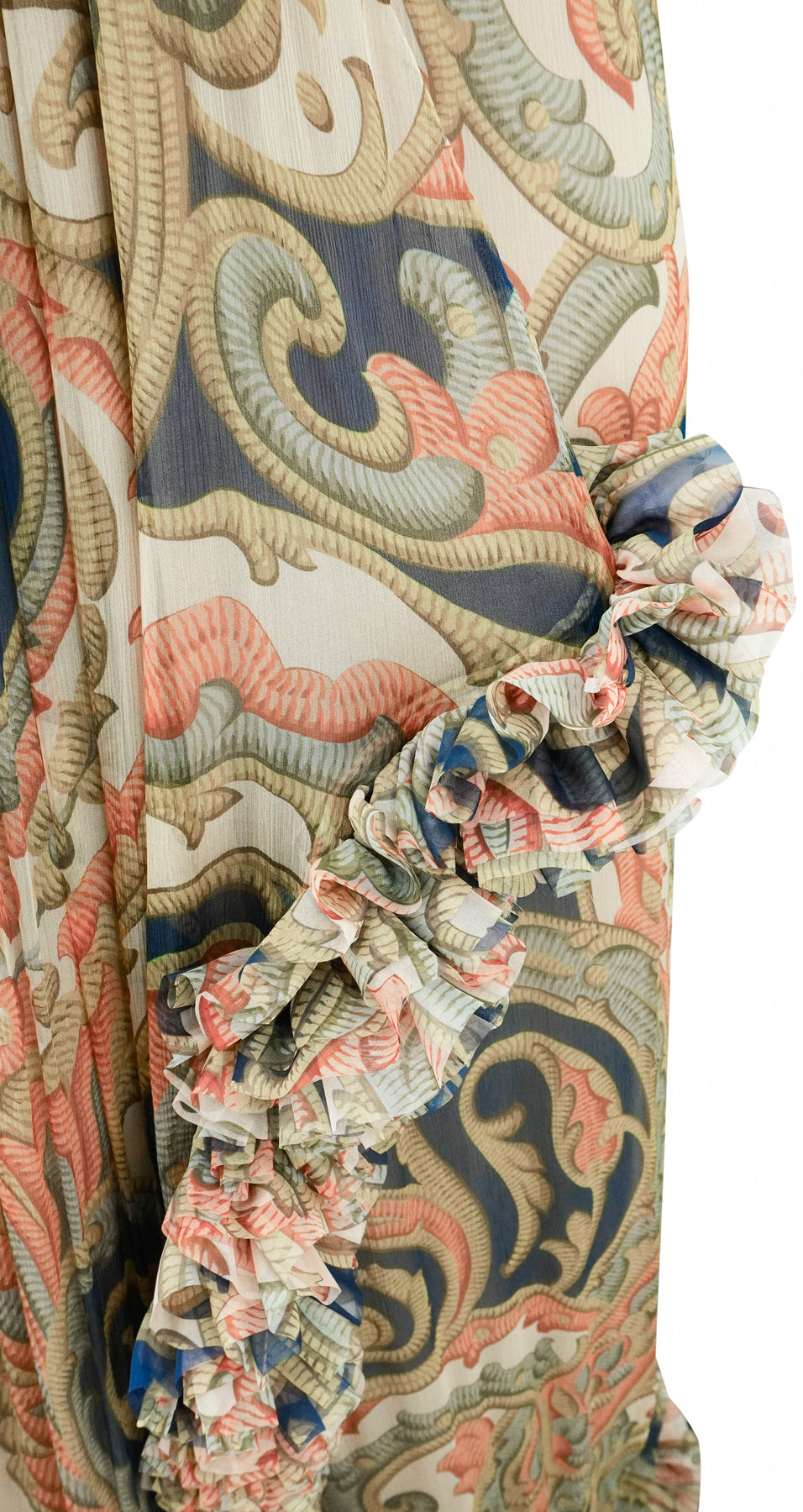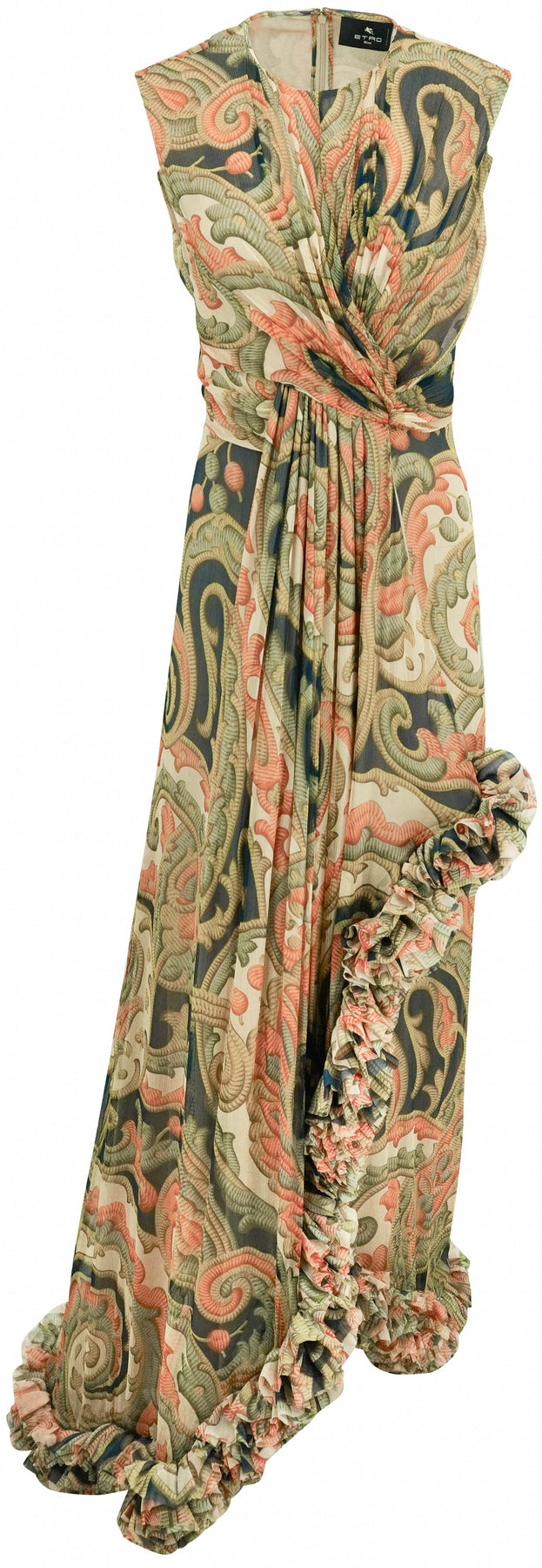 Etro Printed Silk Bustier Dress with Ruching in Navy Blue Multi