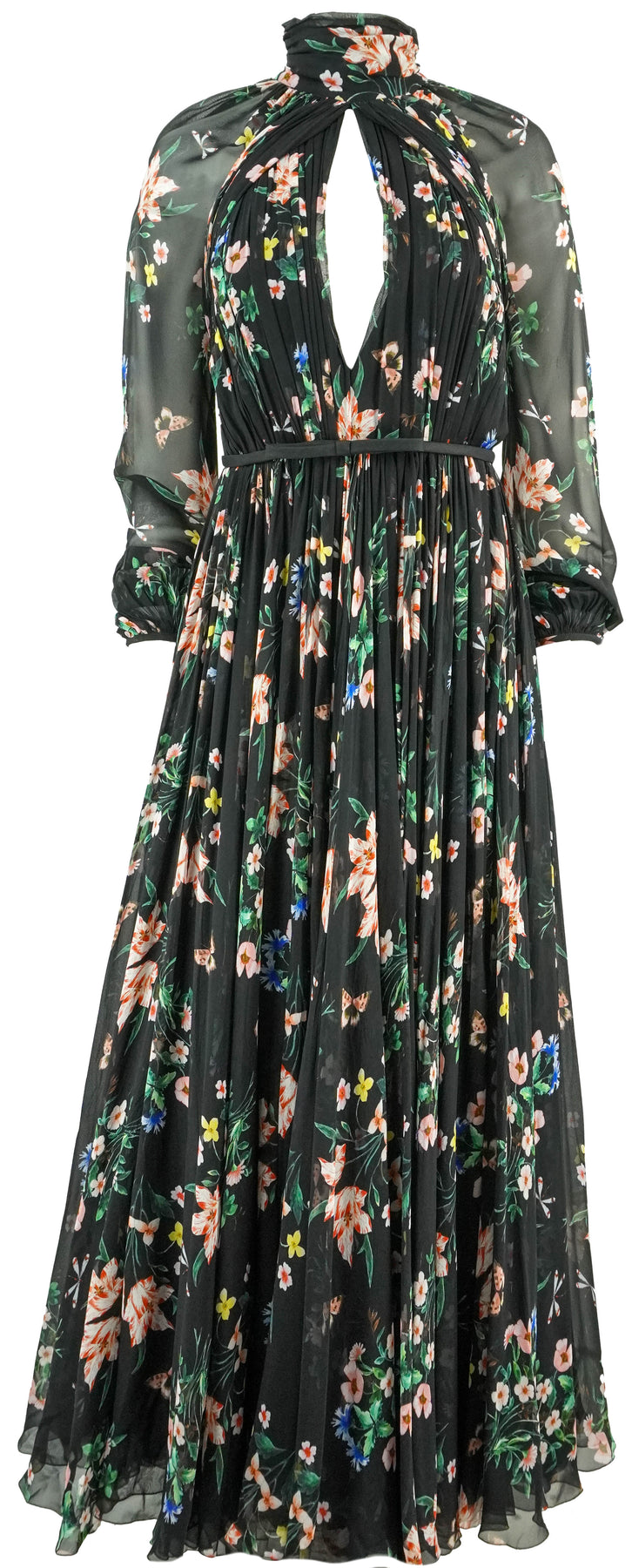 Giambattista Valli Georgette Silk Printed Dress in Black