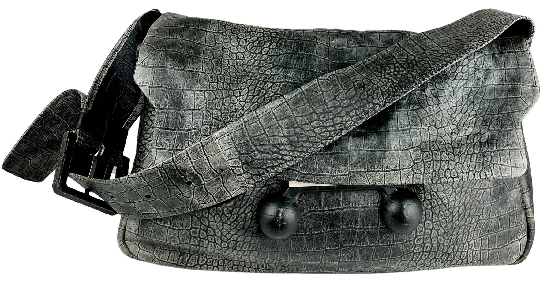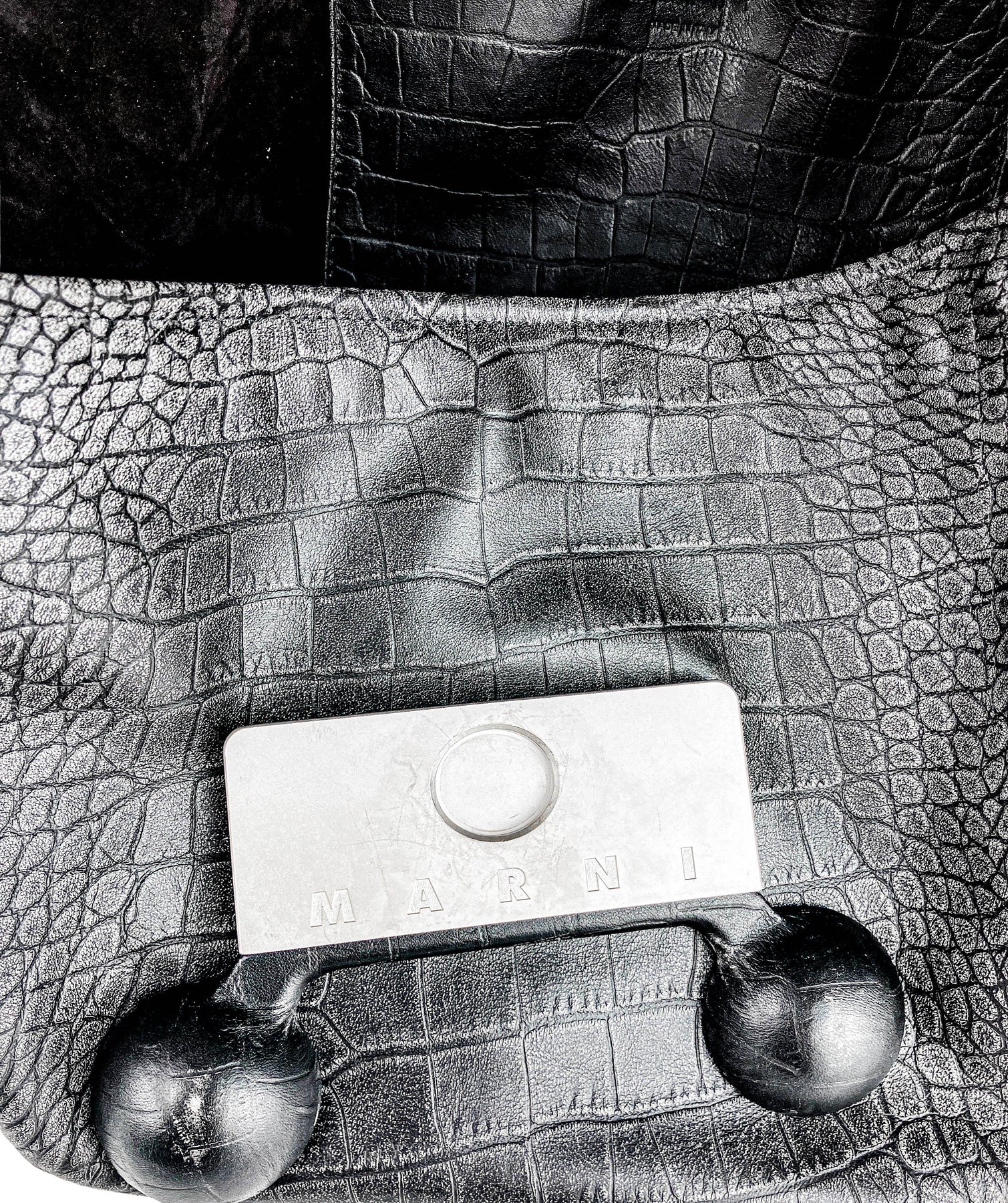 Marni Large Trunkaroo Croc Embossed Bag in Grey