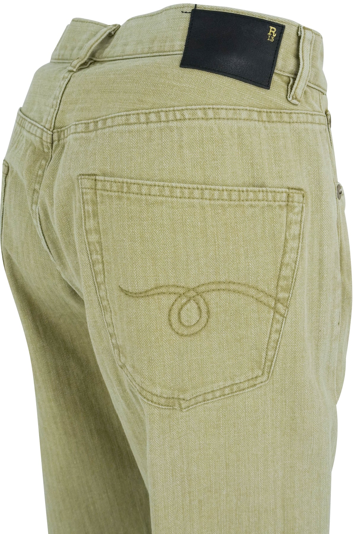 R13 Ex Boyfriend Jeans in Khaki Herringbone Twill