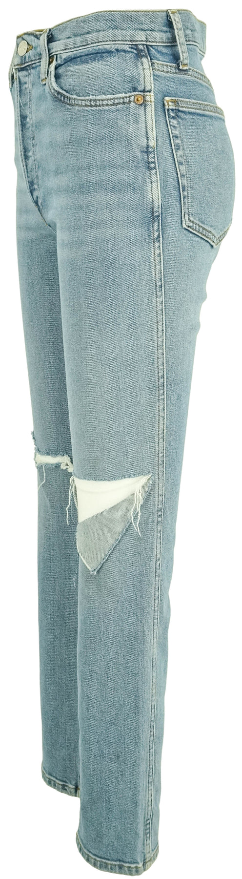 Re/Done 80's Silm Straight Denim in Brisk Blue with Rips
