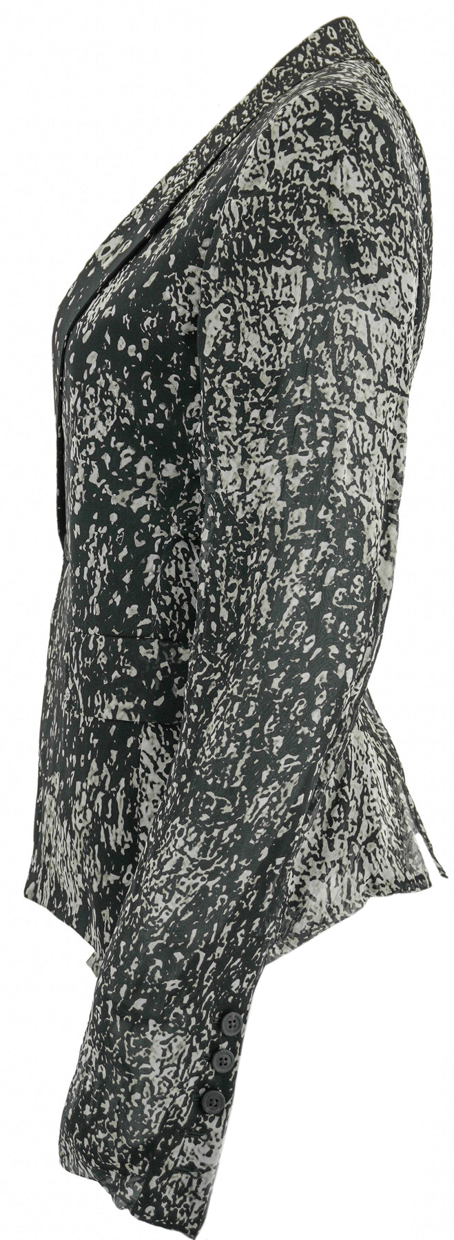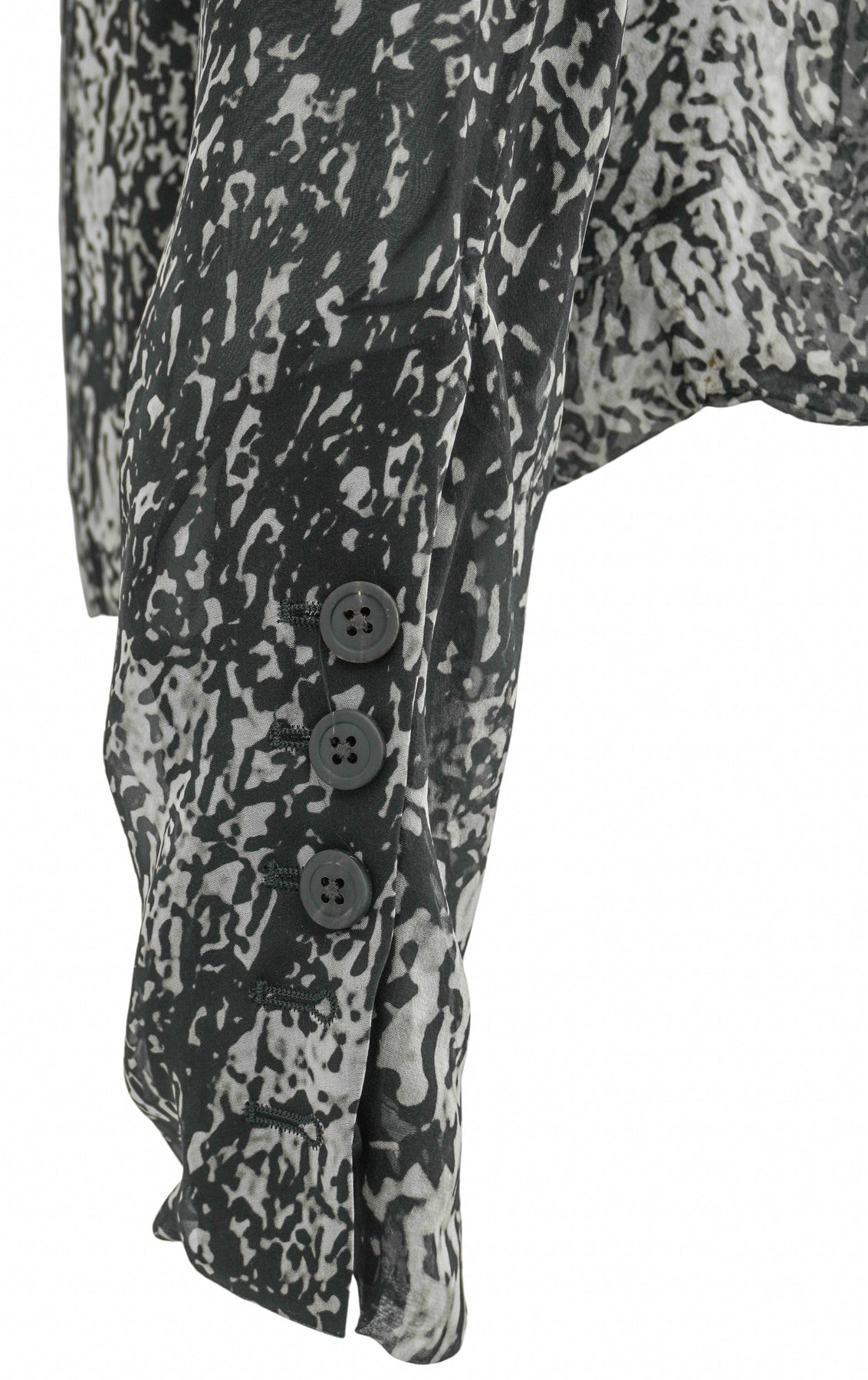 - Long, sheer sleeves with button cuffs