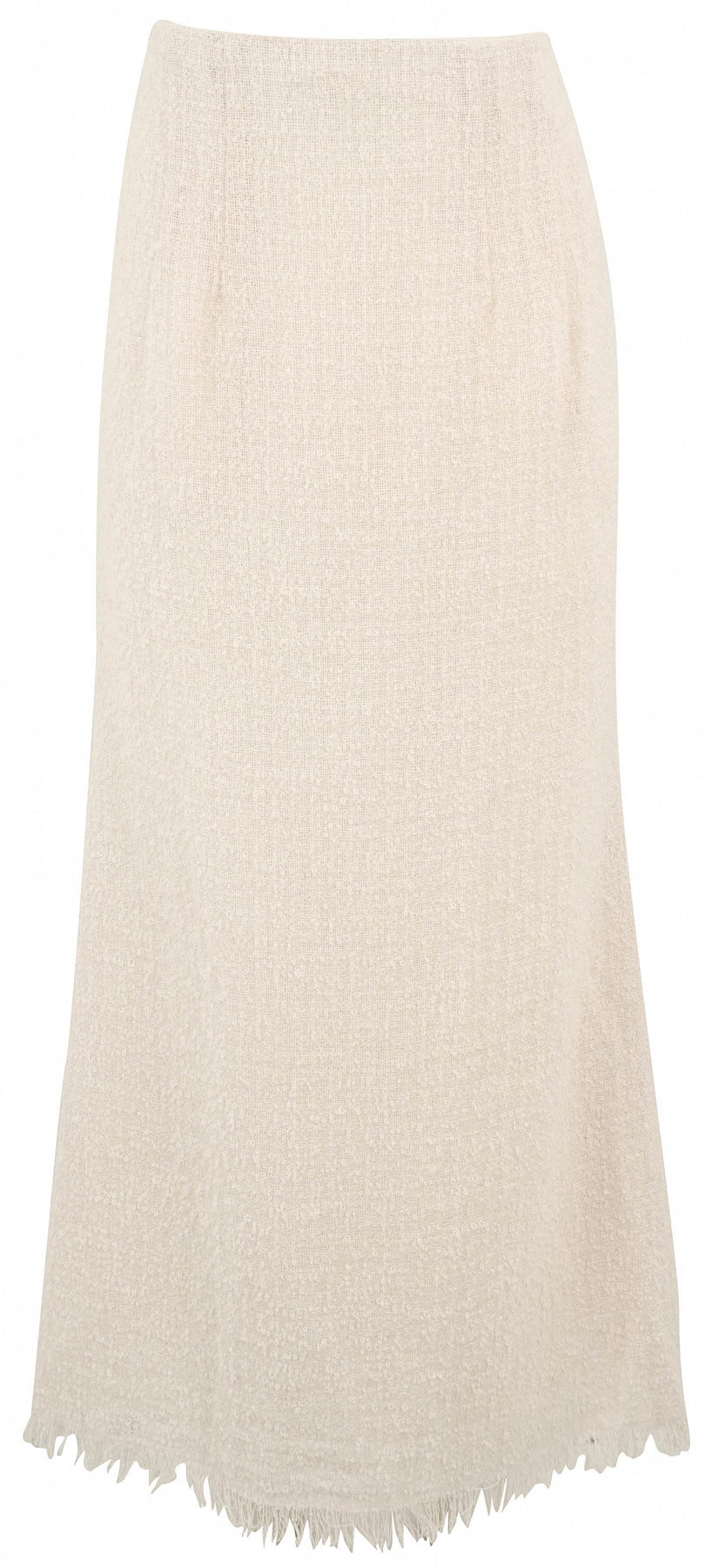 Rosie Assoulin Fringe Flared Pencil Skirt in Tropical Wool Boucle