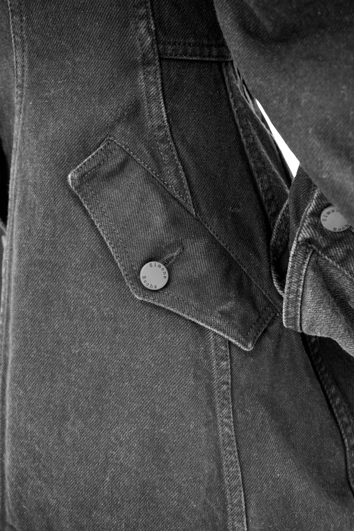 Simone Rocha Embellished Sculpted Denim Coat Dress in Black