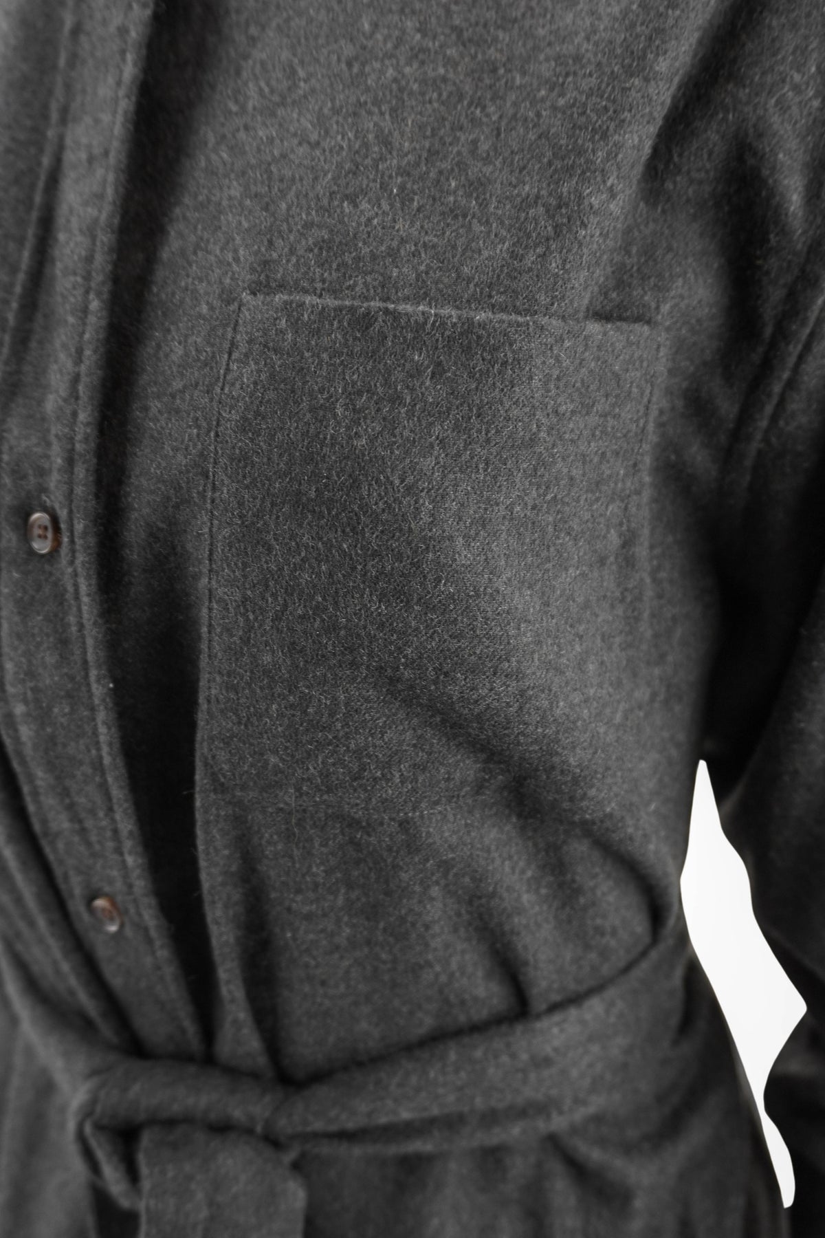 Thom Browne. Tie Waist Shirt Dress in Grey