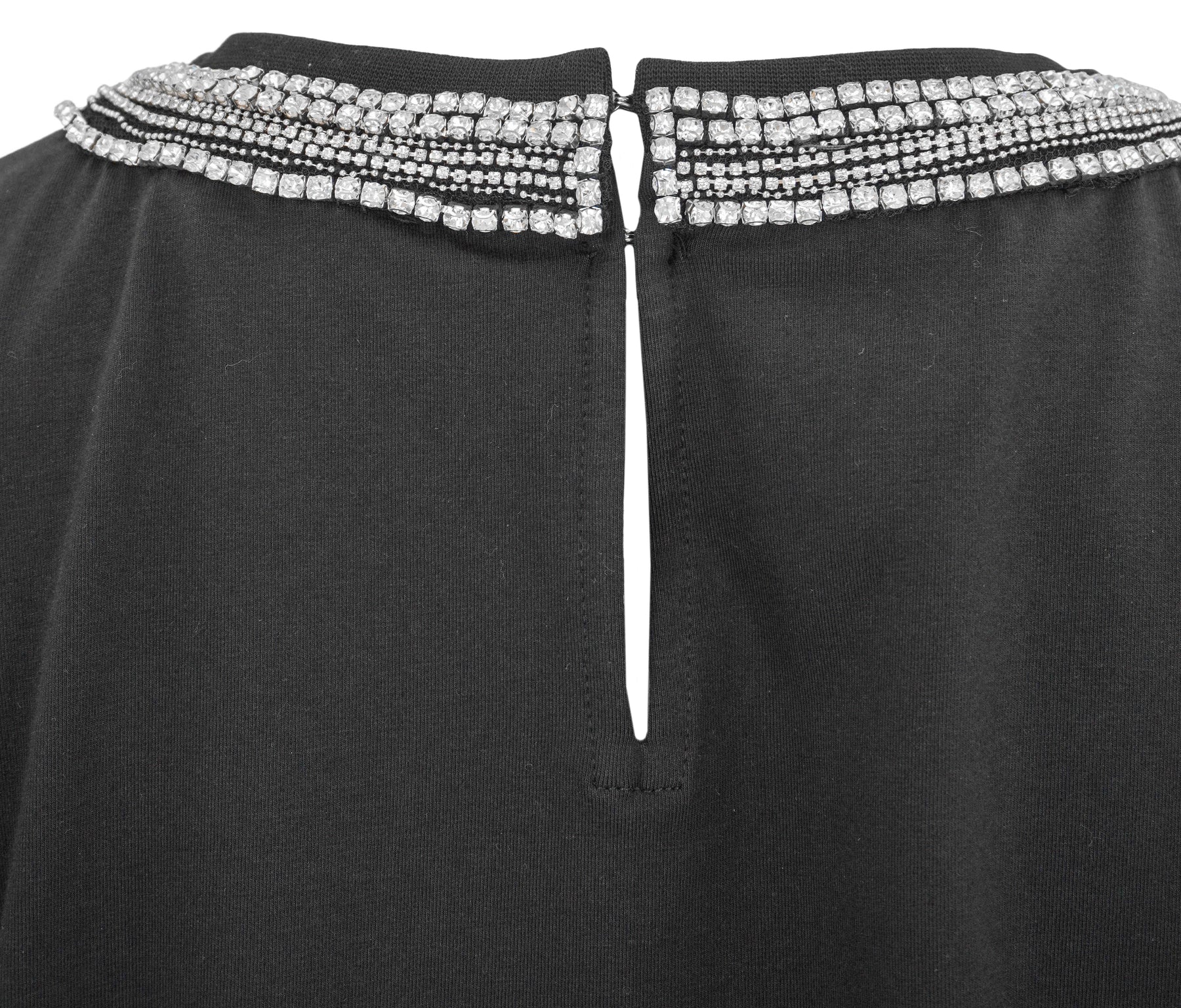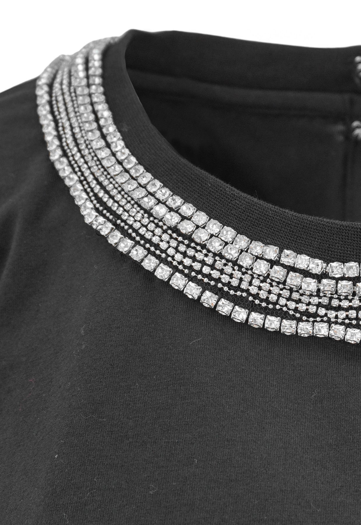 - Round neckline with crystal embellishments