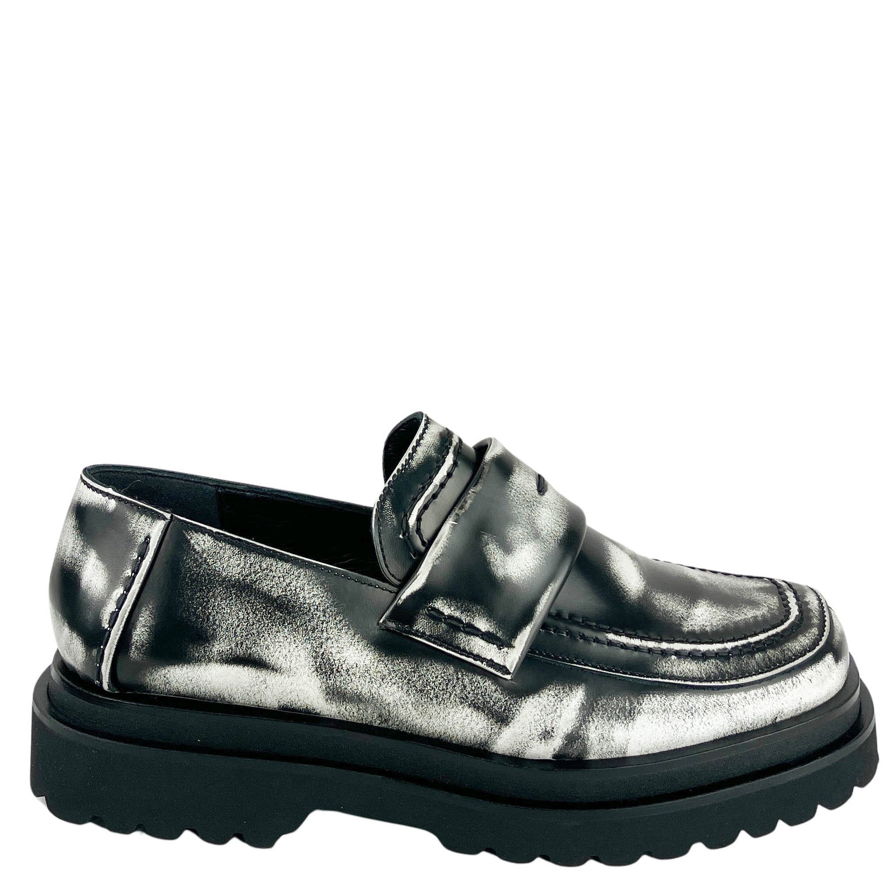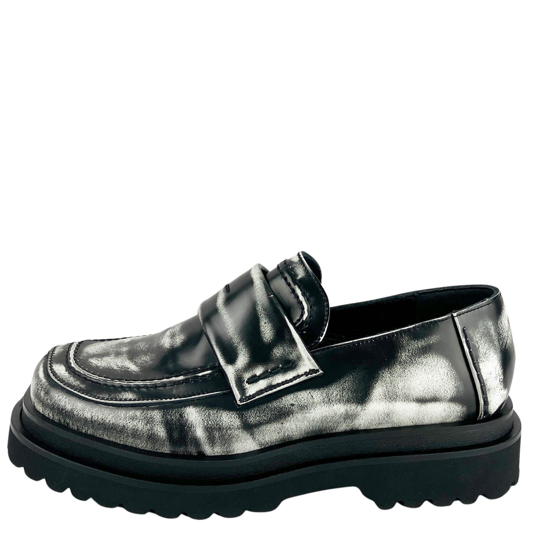 Y's Leather Loafer in Distressed Black