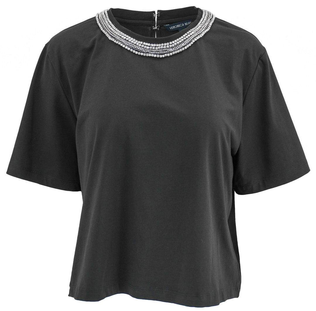 Veronica Beard Sebastian Crystal-Embellished T-Shirt in Black