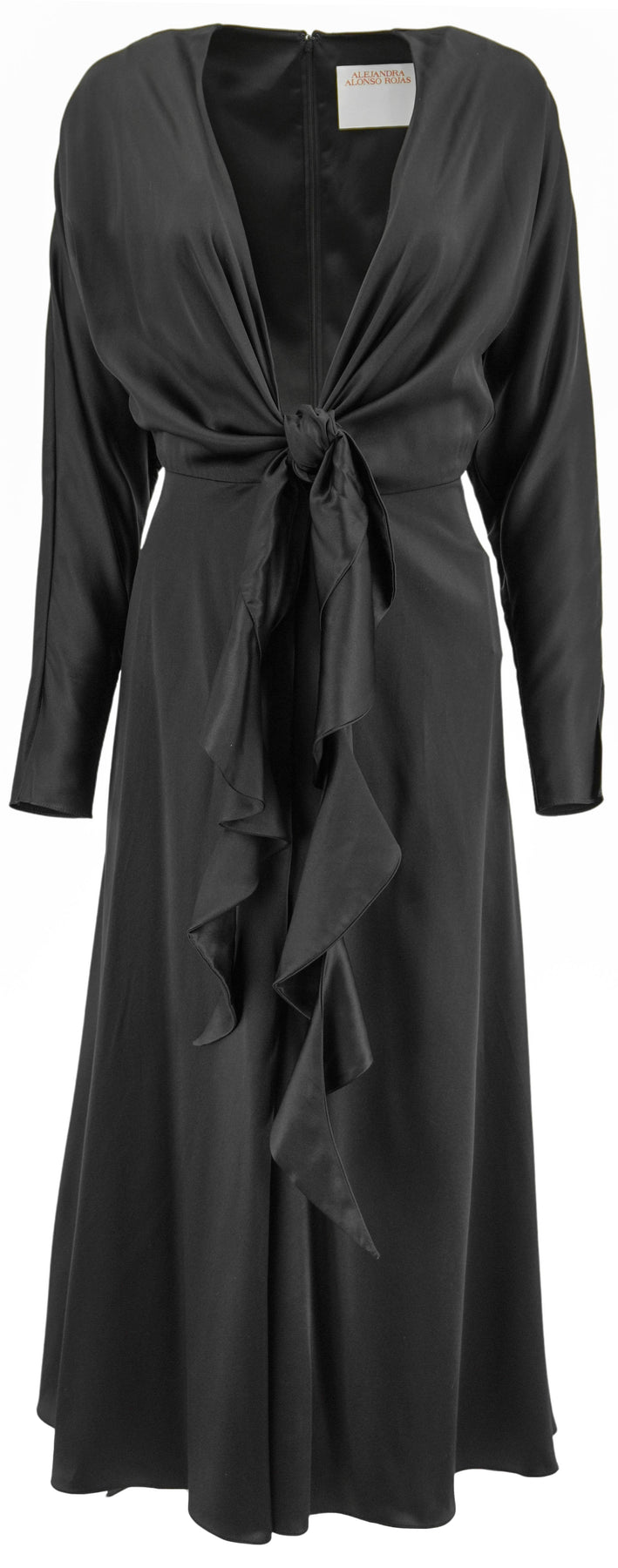 Alejandra Alonso Rojas Tie Front Silk Dress in Black