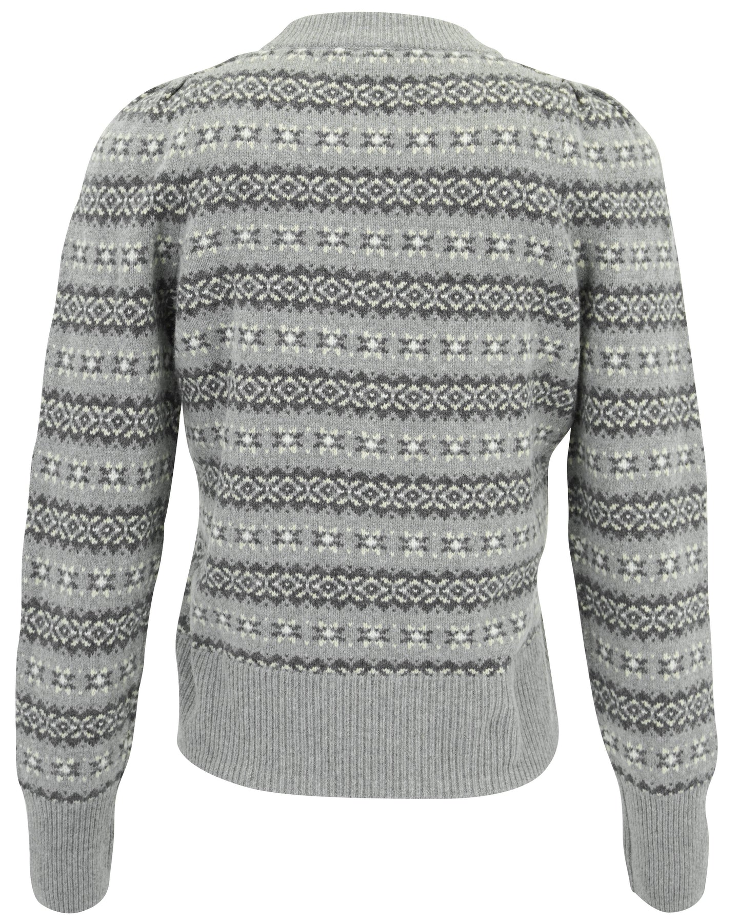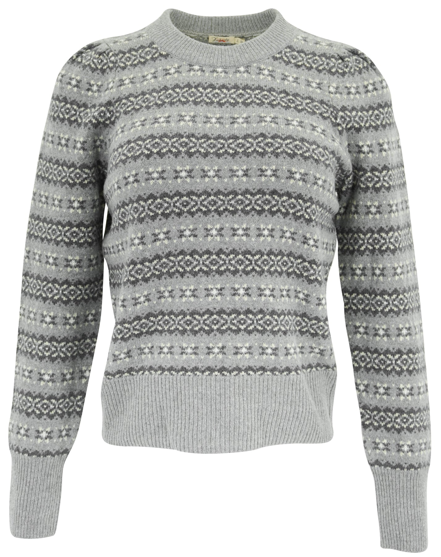 Faherty Highland Fair Isle Puff Sleeve Sweater in Grey Multi