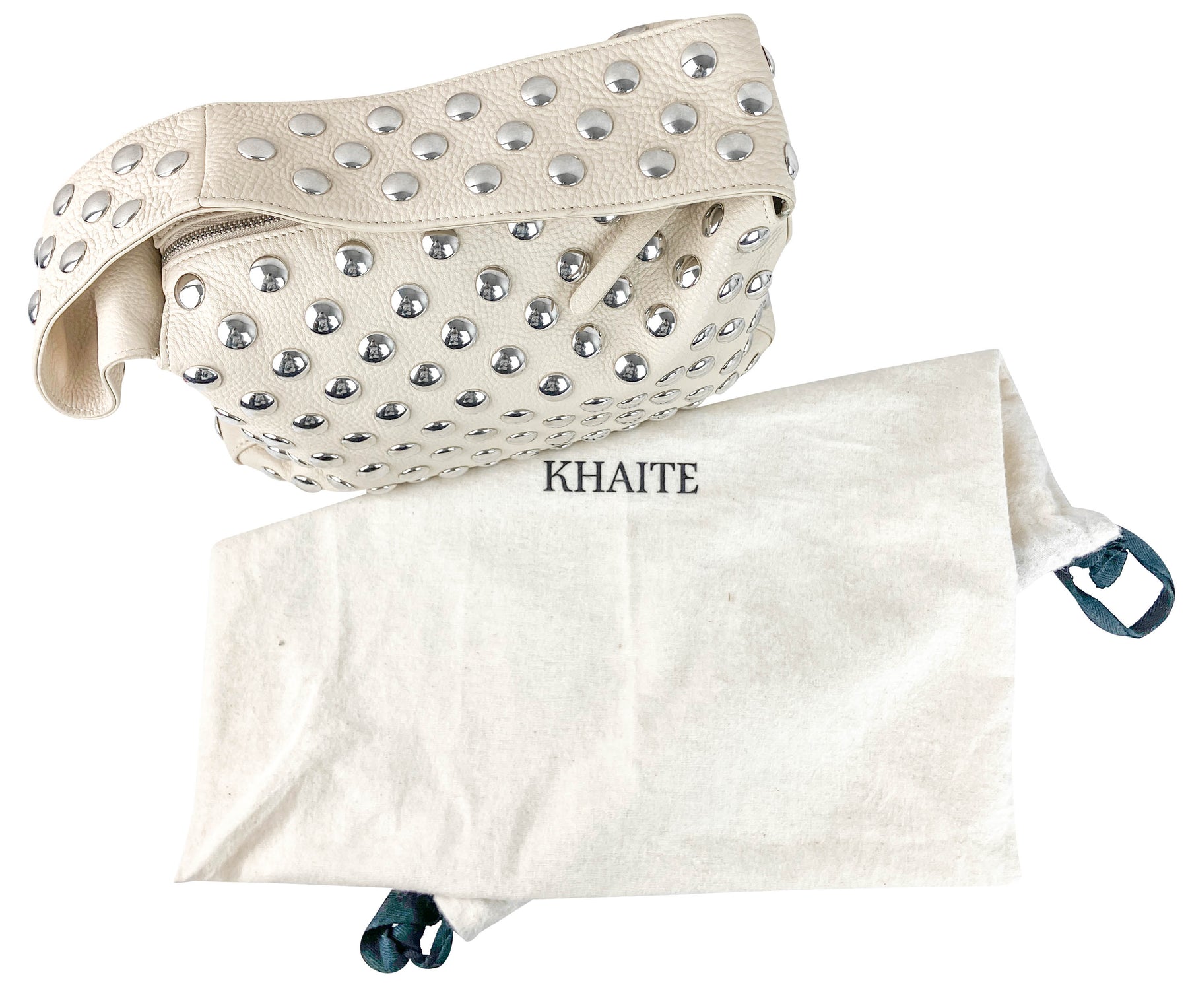 Khaite Studded Leather Shoulder Bag in Cream and Silver