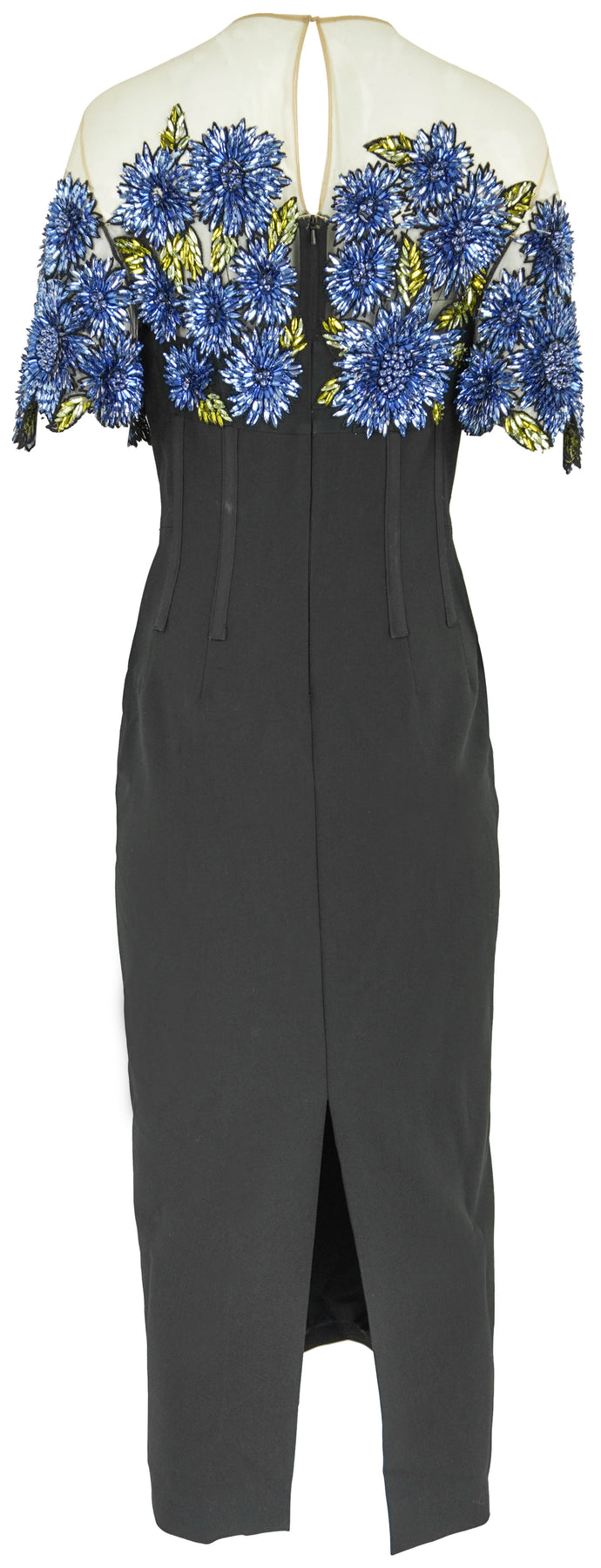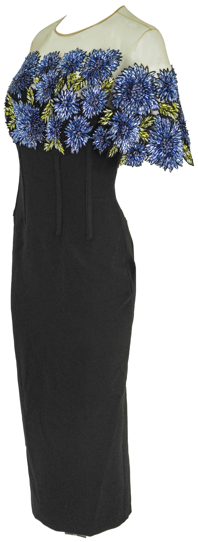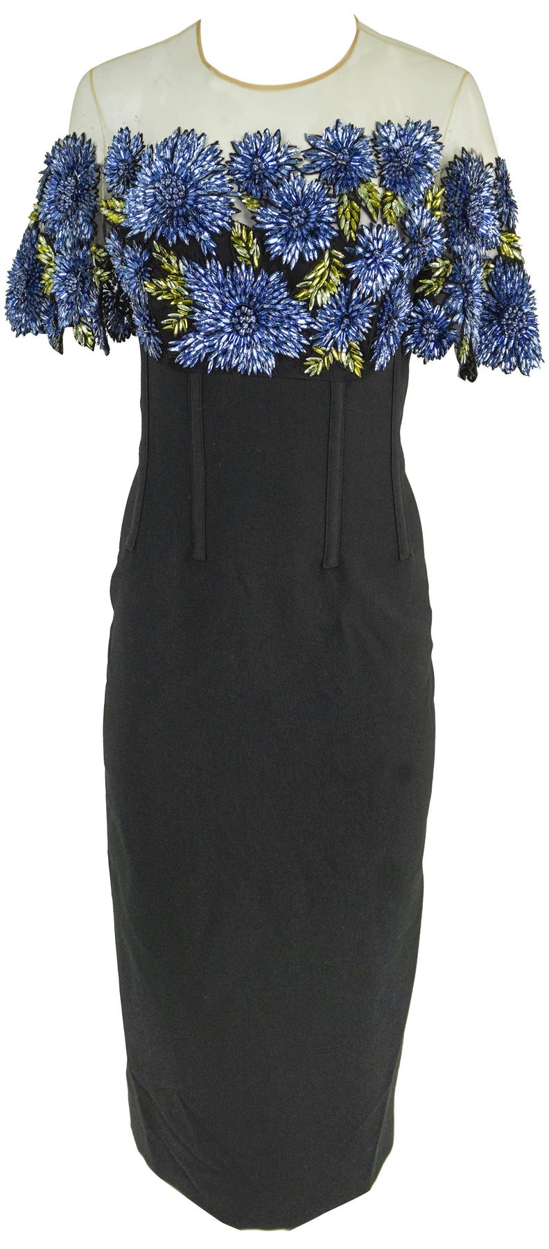 - Dimensional floral embroidery with beads