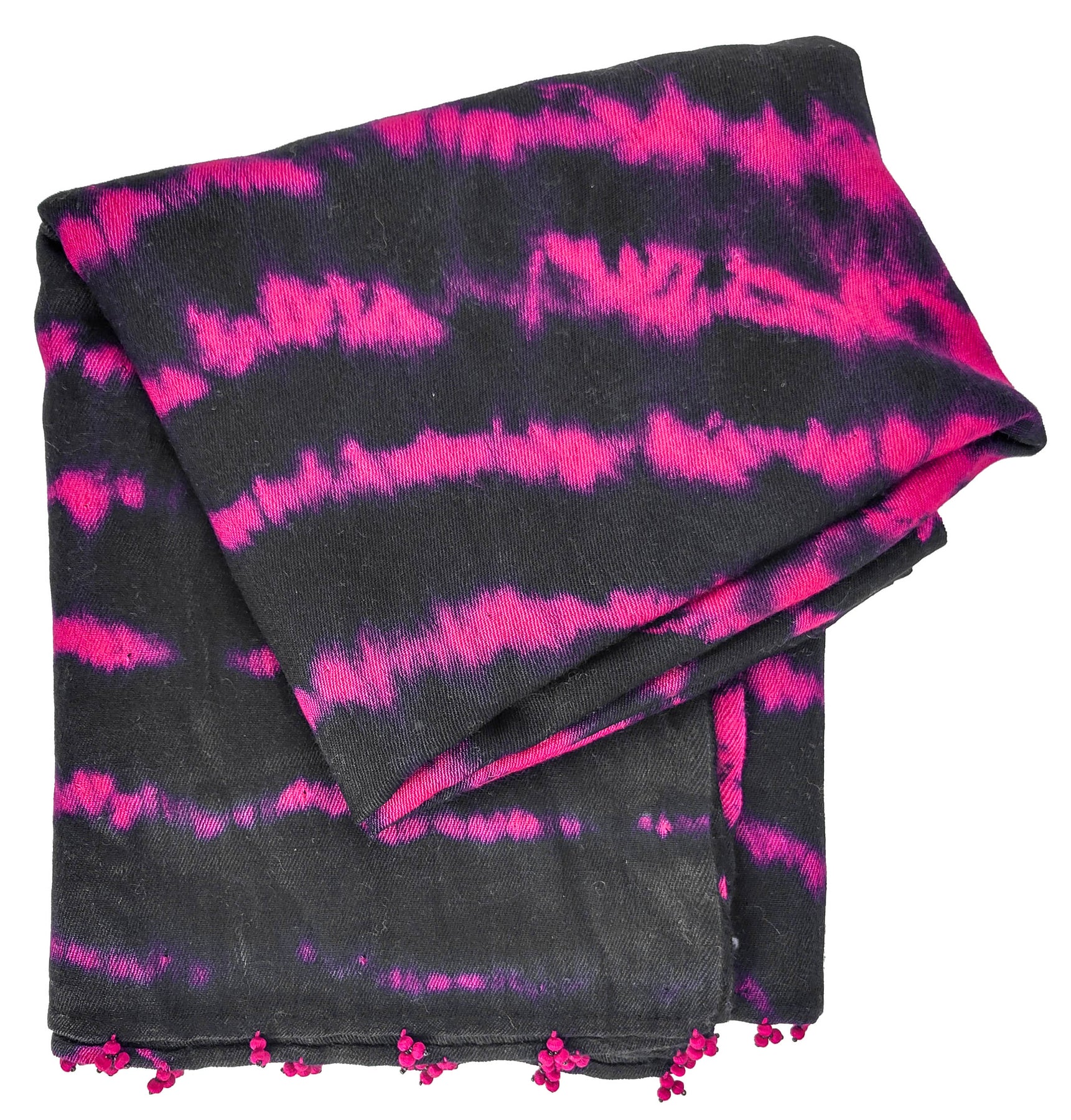 - Trim detail is magenta tightly woven yarn balls in sets of three