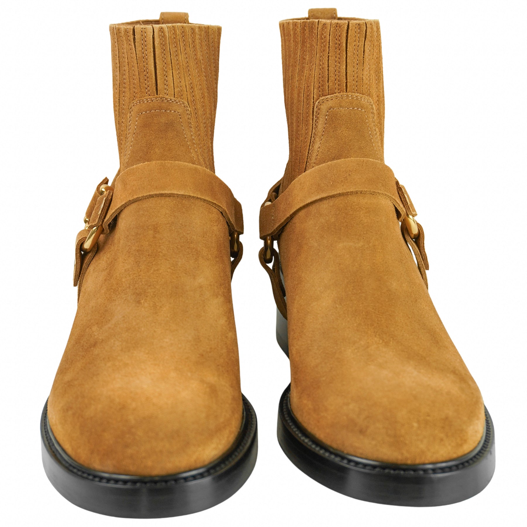 Chloé Heeled Suede Ankle Boots in Gold Brown
