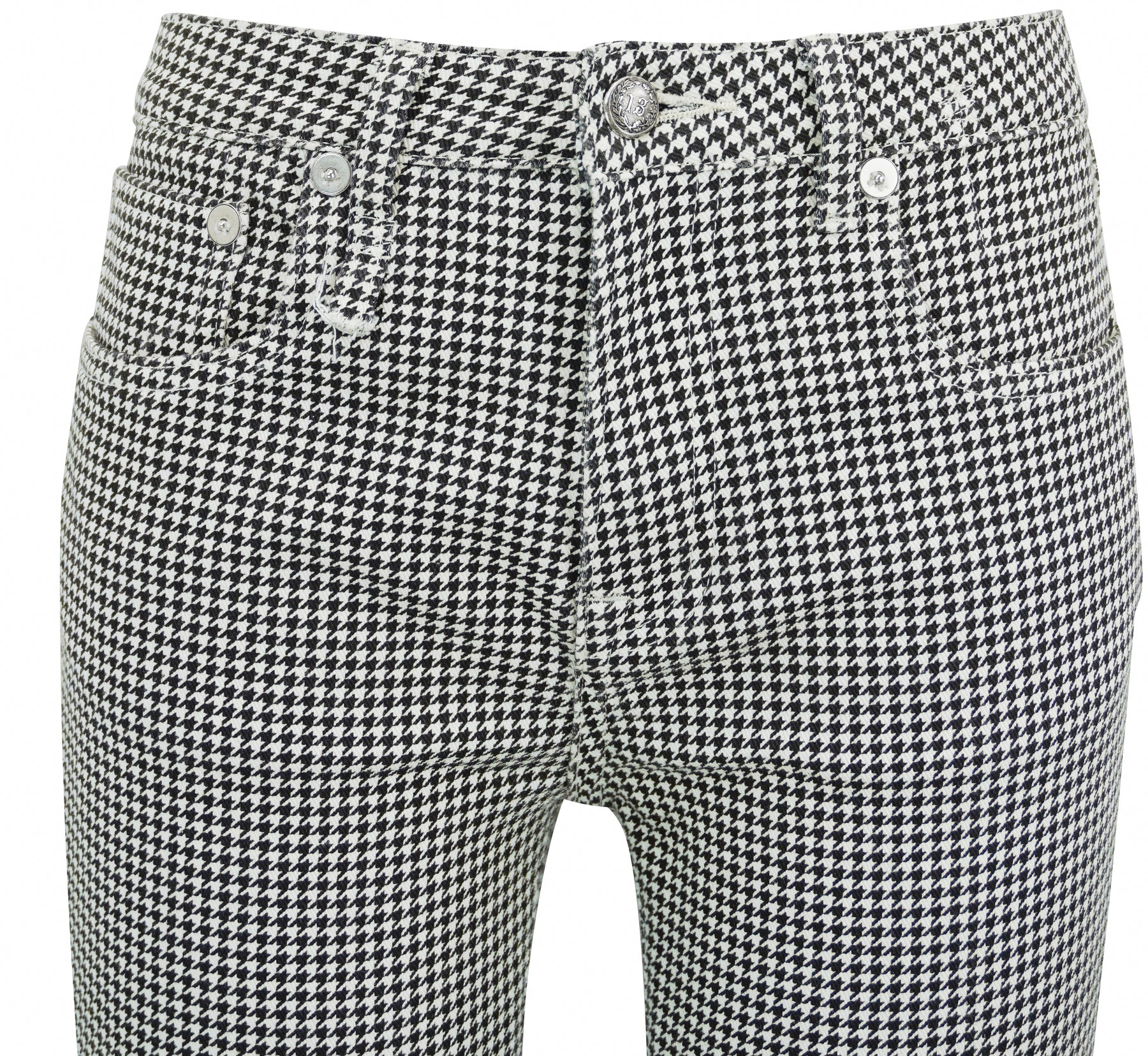 R13 Printed Houndstooth Kick Fit Jeans in Black and White