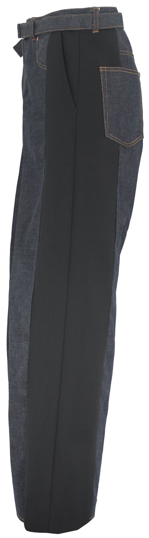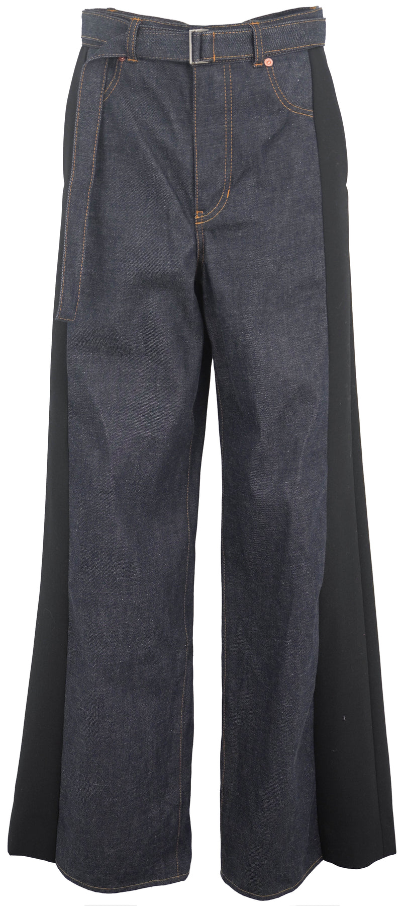 Sacai Wide Leg Trousers with Contrasting Panel in Dark Denim/Black