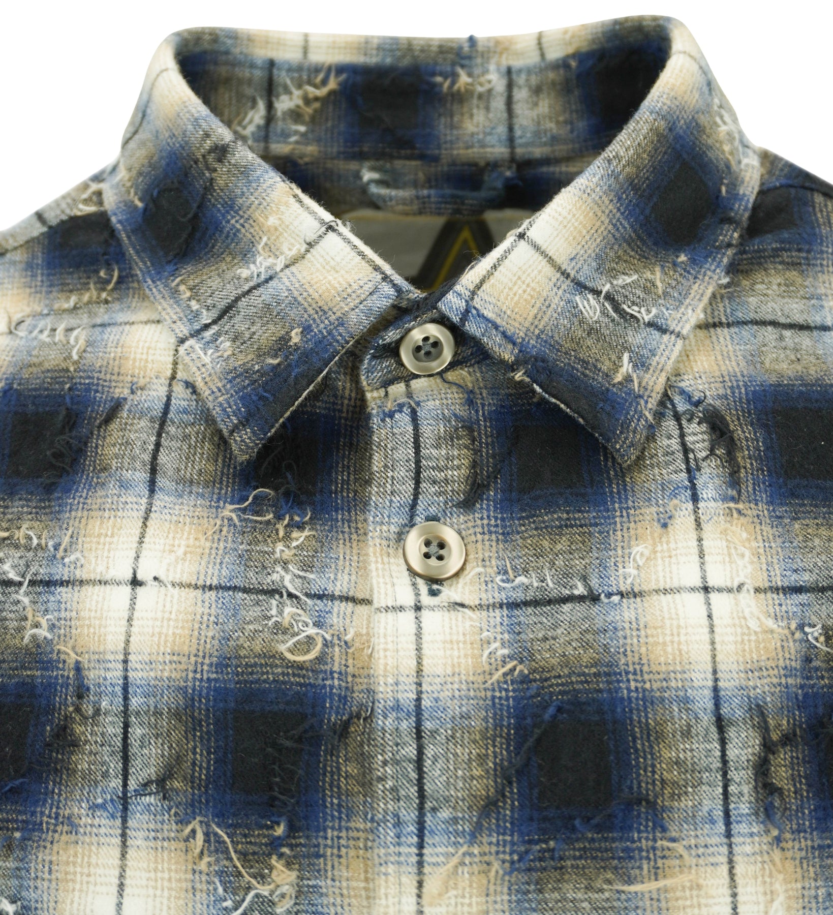 Tintoria Mattei 954 Distressed Flannel in Navy/Black Plaid